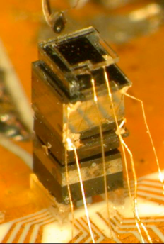 The physics package constructed at NIST stands 4.2 mm above the baseplate on which it is mounted and measures 1.5 mm on a side for a total volume of 9.5 mm3, which is about the size of a grain of rice. The interior of the cell has a volume of 0.81 mm3; just under 10 % of the volume of the physics package is therefore used to confine the atoms. The baseplate on which the laser is also directly mounted was heated to a temperature of 46 °C to tune the laser wavelength to the atomic optical transition used to excite the atoms. The cell was heated with the ITO heaters to a temperature of 80 °C so that the atomic vapor had enough atoms in it to substantially absorb the light field. It has been found previously that an optical absorption near 50 % optimizes the performance of the device. The electrical power required to heat the cell was only 70 mW, suggesting that with some future improvements in design, the device could be operated with a battery of modest size.