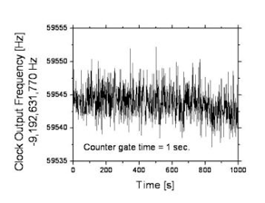 Time series and Allan deviation for the cesium microfabricated atomic clock.