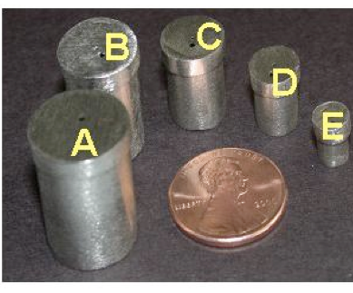 Pictures of the shields (left panel) and physics package (right panel). The miniature coils used to scan the internal field are shown in the upper right panel with shield E.